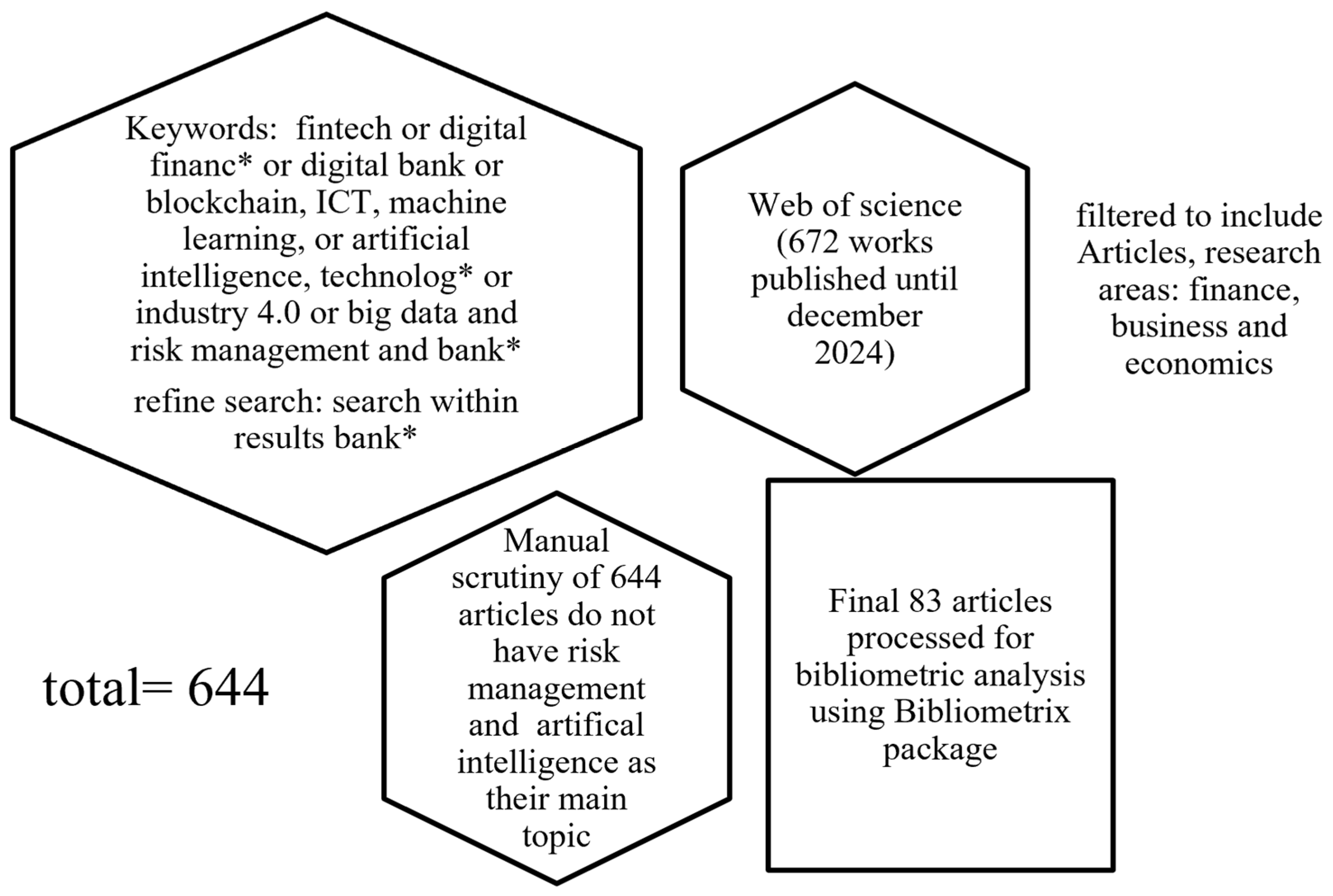 | Title–abstract–keyword review | Excluded general AI or FinTech papers without risk focus; excluded risk papers without AI |