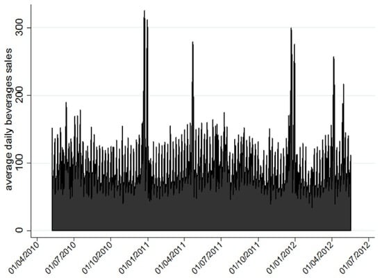 While it is rather easy to make general assessments on the relationship between meteorological elements and certain product consumption, sophisticated statistical analysis is needed for operational decision-making. Weather impact on retail sales has been studied for more than 50 years now [], but there are still only a handful of studies that provide sophisticated econometric analysis of weather effect. Starr-McCluer [] examined the effects of temperature on total US retail sales. Agnew and Palutikof [] examined the effect of temperature, sunlight and precipitation on total UK retail sales and sales of specific product categories: clothing and footwear, fruit and vegetables, and beer and wine. Steele [] studied the impact of snowfall, rainfall, temperature, wind speed and sunshine on the sale of department stores. Parsons [] studied the effect of temperature, rainfall, sunshine hours and relative humidity on shopping centre attendance. Few recent studies examined the weather effect on specific product category sales: refreshing beverages [], tea [], spring herbs and vegetables [] and apparel [,,]. Based on the study review, it can be concluded that weather sensitivity in retail is not uniform but varies between different store types, product categories, geographical areas and seasons. It is why deductive conclusions cannot be made and why weather sensitivity of retail sales should be studied among homogenous group of stores and product categories in climatologically homogenous areas. In order to manage weather risk effectively, retailers need to learn to understand it first.