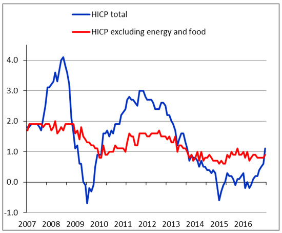 Consumer price inflation in the euro area (annual percentage changes). Source: Eurostat. Latest observation: December 2016. Note: HICP = Harmonized Index of Consumer Prices.