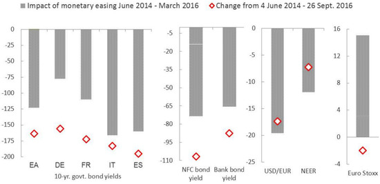 - De Santis, Roberto A. 2016. Impact of the Asset Purchase Programme on Euro Area Government Bond Yields Using Market News. ECB Working Paper, No. 1939. Frankfurt am Main, Germany: European Central Bank. [Google Scholar]