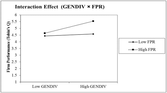 Pearson’s correlation analysis was performed and reported in Table 3. The correlation matrix shows that there was a statistically significant correlation between the variables. The interaction variable [Gender Diversity × Foreign Participation (GENDIV × FPR)] was strongly positively correlated with firm performance (Tobin’s Q). Gender diversity (GENDIV) and foreign participation were also positively correlated with firm performance. However, age profile (AGEP) and tenure diversity (TNDIV) were negatively correlated with firm performance. The variables values that were closer to 1 are strongly correlated.