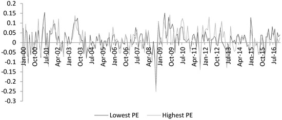 Table 5. Low P/E stocks are typically associated with value investments while high P/E stocks are typically associated with growth stocks.