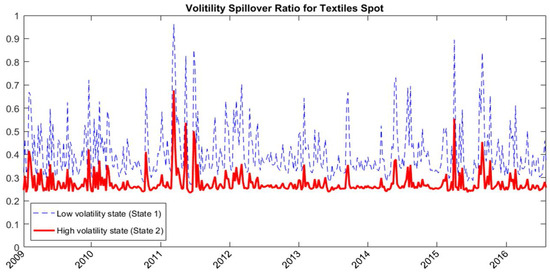 The state-dependent volatility spillover ratios for textiles spot estimated with RSVSG.