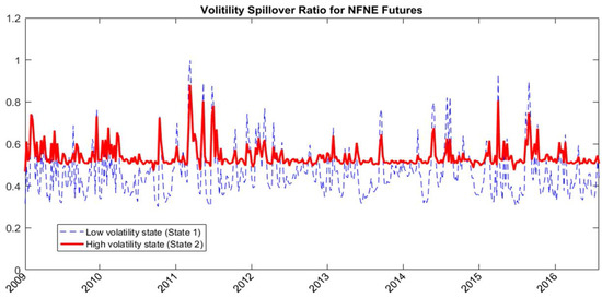 The state-dependent volatility spillover ratios for NFNE futures estimated with RSVSG.