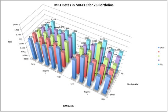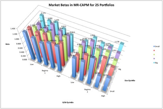 In the beta process, we allow risk loading for each risk factor to switch across regimes. Figure 2 plots the market betas in the MR-CAPM model for the 25 characterized portfolios.