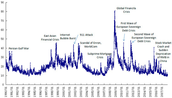 The outbreak of the financial crisis and subsequent debt crisis in Europe made VIX index not only reflect the problems of United States financial markets, but also to a large extent reflect investors’ expectation of global financial market stability. Figure 6 verifies that the fluctuation of VIX was mainly triggered by some non-US incidents after a global financial crisis, such as the European Sovereign Debt Crisis and stock market crash and sudden depreciation of RMB in China. The rise or fall of the VIX index stimulates the risk aversion or risk-taking preference of the market participants, which leads to a significant positive relationship between VIX index and USD index. When the crisis gradually passes away, the overall market sentiment calms down again, and the relationship between the two tends to zero again.