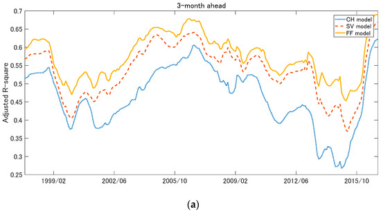 Figure 3 plots the time-series of the adjusted for each 3, 6, and 12 months ahead. The plotted value was the average of the 500 artificial adjusted s. The adjusted- values of the relative factors of the SV model and FF model were superior to the CH model.