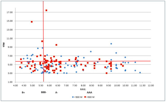 For bonds selling in a distressed condition (i.e., 1000 basis points or more above Treasuries), the key question to ask is whether the company will continue to migrate to an even lower credit quality (or, in fact, default) or whether the PD is sufficiently low to conclude that its price will return to par (assuming it had already migrated down, perhaps even to a ‘fallen angel’ downgraded condition). The upside potential, from distressed to par, provides equity-type returns that are far greater than returns expected from a typical investment grade or even high-yield portfolio. Indeed, the average return on a portfolio of non-investment grade bonds in 2009 was about 60%, as a large proportion of those corporate bonds that were distressed as of the end of 2008 returned to par or above-par value in about one year. Probably the onset of the benign (forgiving) credit cycle had a lot to do with this incredible run, but one’s conviction to select securities that are selling at ‘deep junk’ or distressed-yield levels can be heightened when the credit model ascribes a higher BRE to the security than the one derived from the market. This ‘quality-junk’ investment strategy can be shown in Figure 2, whereby higher yield bonds from companies in quadrants A and B, with relatively strong BREs, are particularly attractive candidates. The Z-score model referenced in Figure 2 is actually our Z”-score specification, developed for emerging market firms (Altman et al. 1997) and also advocated for non-manufacturers. This model has been used in several academic studies, as well, (see for example, Altman et al. 2014).