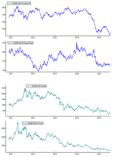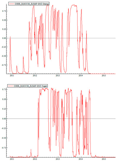 The financialization of commodity markets and the globalization of financial markets have contributed to the integration of financial and commodity markets. Recent empirical studies have suggested a dynamic linkage between commodities and equity markets. Baur and McDermott (2010) find a negative relationship between gold and stock prices. They conclude that gold can be considered a safe-haven asset. Vacha and Barunik (2012) and Delatte and Lopez (2013) show no relationship between equity and commodity market returns in the 1990s and during most of the 2000s, except for industrial metals. Silvennoinen and Thorp (2013) find that correlations between S&P 500 returns and common commodity returns increased in many cases over the 1990–2009 period and increased sharply in the wake of the recent global financial crisis. Creti et al. (2013) found significant volatility transmission between commodity and equity markets since 2008. The largest decrease in correlations was at the time of the recent global financial crisis, but only for a short period. Charfeddine and Benlagha (2016) studied time-varying dependence between commodity and stock market returns (SP500, CAC40, DAX30 and FTSE100) using copula functions. They found a dynamic linkage between stock market and commodity returns and that the Student’s t-copula is more appropriate for modeling dependency. Olson et al. (2017) investigate whether commodities are effective hedges for equity holders. They found that commodities are not effective hedges for equity market investors during normal or crisis periods. However, Daskalaki et al. (2017) found that commodities provide diversification benefits for second and third generation indices. This result holds for both in-sample and out-of-sample and for different equity strategies.