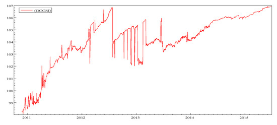 where is the matrix of unconditional covariances of the standardized errors obtained in the first stage. Since the residuals from the Equation (1) are standardized and used in the second stage of estimation, the dynamic correlation coefficient matrix is Pt = Q*−1·QtQ*−1, where , which is a diagonal matrix composed of the square root of the diagonal elements of , is expressed as follows: