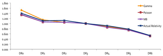 Results of relativities for DR obtained from GLM under gamma and Poisson models.