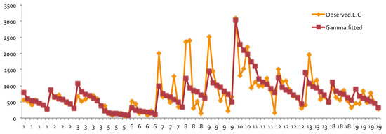 The main idea of generalized linear models (GLMs) (De Jong 2001; Haberman 1996; Ohlsson 2010) in rate-making is to model a transformation of the expected value of a response variable, which in our case is . The transformation function is called the link function, where . The model that is used to explain the transformation function g is a linear model, and it can be written as follows: