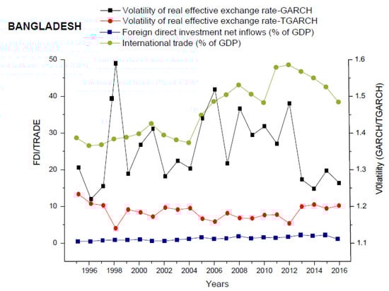 Exchange Rate Volatility vs. FDI/Trade (Bangladesh).