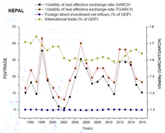 Exchange Rate Volatility vs. FDI/Trade (Nepal).