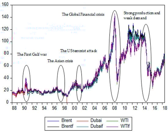 The crude oil market has experienced numerous fluctuations over time, and is considered to be one of the most volatile commodity markets (Oil Price 2018). There are various triggers impacting crude oil prices, with the most influential being supply and demand shocks, business cycles, speculative activities, and economic, financial and political instabilities (Hamilton 2014; Robe and Wallen 2016). For example, the first and second Gulf Wars were caused by political unrests that led to significant oil supply disruptions. On the other hand, during the Asian Financial Crisis and the Global Financial Crisis, oil price fluctuations appeared to be mainly caused by inefficiencies in financial markets that were transmitted to the oil market due to high levels of uncertainty and lower demand. As such, it is essential for oil market participants to identify the main reasons for oil price jumps and the degree of such oil price changes when faced with specific triggers. For example, when there is an oil supply shock caused by political unrest, it would be expected that oil prices would experience a sharp increase over the period, and as such, investors can integrate this kind of behaviour as part of their portfolio management strategies (Kilian 2006; Morales and Andreosso-O’Callaghan 2014).