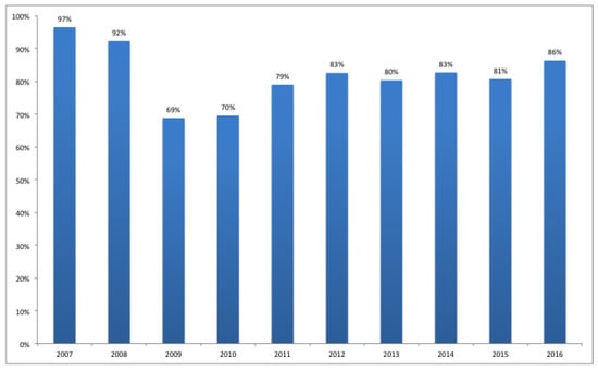 The last Test match Durham hosted was against Sri Lanka in 2016, which again was in the early part of the English cricketing summer. The result was the lowest turnover of the four Test match hosting years (2007, 2009, 2013 and 2016). Figure 6 displays Durham’s debt ratio over the last 10 years. As previously stated anything over 75% is considered a cause for concern and Durham apart from 2009 and 2010 has consistently exceeded this figure. The club’s growth has been reliant on external borrowing to fund capital investments, mainly from Durham County Council. However, the club’s financial health demonstrates a lack of liquidity with their cash-flow focused on, and around, the cricketing summer (April to September). Unfortunately, with creditors calling in their debts, a financial restructure had to take place to stop the club being the first county cricket club to enter administration. In 2016 the ECB bailed out Durham, in order for the club to pay its creditors (). However, the club faced stiff penalties (relegation and deduction of points). This is a prime example of the risk county cricket clubs face if creditors call in their debts. Ultimately the majority of clubs could not afford to pay their creditors if debts were called in and Durham was the first club to succumb to this pressure.