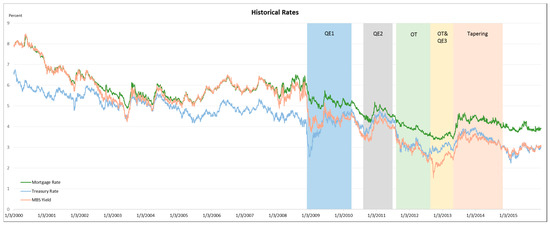 - Hancock, Diana, and Wayne Passmore. 2015. How Does the Federal Reserve’s Large-Scale Asset Purchase (LSAPs) Influence Mortgage-Backed Securities (MBS) Yields and U.S. Mortgage Rates? Real Estate Economics 43: 855–90. [Google Scholar] [CrossRef]