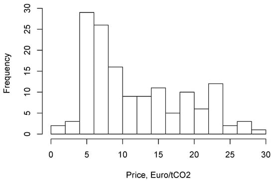 CO-price distribution from the EU ETS for the period August 2005–February 2018.