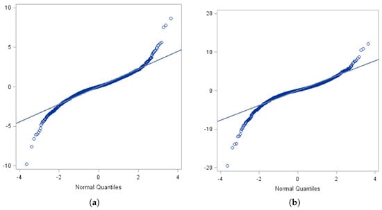 The results are corroborated by Figure 1, which display “quantile–quantile” (QQ) plots, for the natural log of metal price returns. If the log returns of the metal prices follow geometric Brownian motion (GBM), then the commodity prices would be log-normally distributed; that is the natural log of the commodity prices would be normally distributed, and hence “normal-tailed”. The QQ plots compare the values observed in the empirical distribution (measured on the y-axis) against the value from the inverse of a theoretical normal distribution whose mean and standard deviation corresponds to the value associated with the empirical distribution (measured on the x-axis). If the empirical distribution of the natural log of the price return series is close to the normal distribution, the QQ plot will be well described by a straight line. Alternatively, if there are significant departures from a linear relationship, then the return series is not well-described by a normal distribution. Based on the Figure 1a–e, we see consistent departures from a linear relation, particularly in the tails, which indicate significance lepotkurtosis and cast doubt on the assumption of an underlying GBM process.