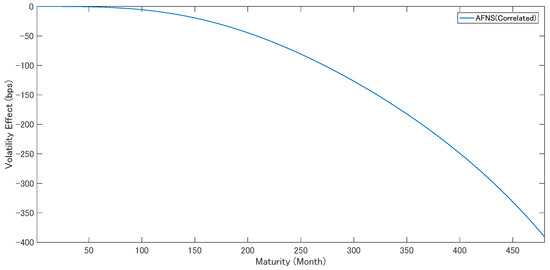 Next, we consider the yield adjustment term . From Equation (24), we can analytically derive the yield adjustment term. In the risk-neutral measure , is zero. Therefore, the yield adjustment term is: