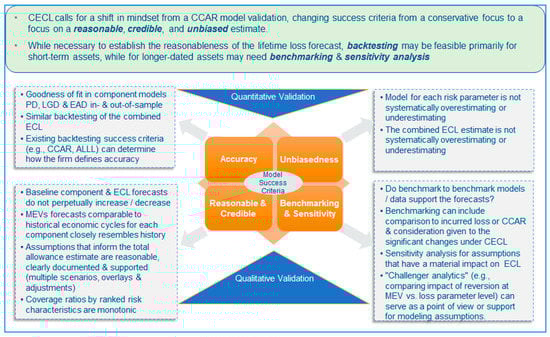 In model validation of a CECL model, we have to consider the main elements that distinguish this exercise from either the legacy loan provisioning approach or other credit risk modeling applications. The first consideration is the specification of the credit risk models that connect loan or obligor risk factors and macroeconomic variables to loan losses. The other key consideration is the scenario generation models that project macroeconomic forecasts and expected scenarios, which are as critical as the credit model specifications in driving outcomes. As it is known from related modeling exercises such as stress testing (“ST”), used by supervisors to assess the reliability of credit risk models in the revised Basel framework () or the Basel guidance on ST (), such models are subject to heightened supervisory scrutiny. A supervisory concern is that the complex models underlying these exercises may be subject to model risk, understood to be the danger that these constructs fail to quantify the risks that they were designed to model (). In the case of CECL, it is expected that such reviews will be more rigorous as compared to other contexts such as Basel or CCAR, given the financial statement reporting implications of CECL.