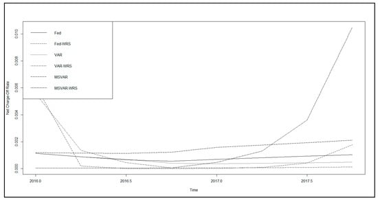 There is rather limited literature on scenario generation in the context of stress testing. () examined this in the context of CCAR and credit risk by conducting an empirical experiment using data from regulatory filings and Federal Reserve macroeconomic data. The authors found that an MS-VAR model performed better than a standard VAR model, in terms of producing severe scenarios more conservatively, as well as showing superior predictive accuracy.