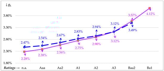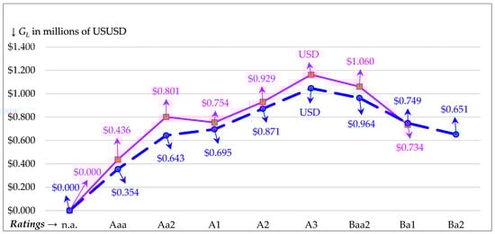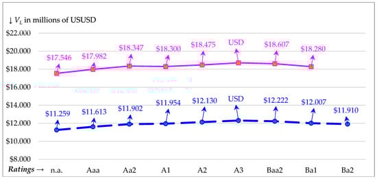 () notes a number of caveats with this procedure and finds that the use of the nongrowth optimal P choice will generally yield the growth optimal P choice when using a long-run historical growth rate. If we assume an average firm, then tests can be reduced to those credit ratings that are most common as is done by (). As shown by (), the nongrowth CSM equations generate credit ratings that are consistent with the ratings most often achieved by firms. Of importance, the nongrowth test generates only one max VL that corresponds to a credit rating that can be called the optimal credit rating (OCR). For our main tests that focus on the years of 2018 and 2019, the nongrowth OCR is Moody’s A3. This OCR is also used for our growth tests as described next.