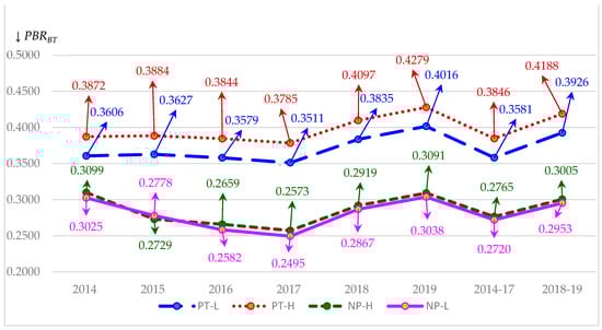 Second, the before-tax plowback ratio (PBRBT) drop of 26.63%, which was cited previously, is consistent with other PBRBT results in Table 7. As seen in the mean row, PBRBT for the four tests declines, on average by 27.52%, which is very consistent with 26.63%. The pattern for the unlevered equity growth rate (gU) is similar to that for PBRBT, e.g., the smaller values for both PBRBT and gU occur for the two L tax rate tests. Since retained earnings (RE) is positively related to both outcomes, our conclusion that NPs grow with less need for RE (compared to PTs) still holds.