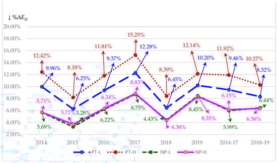 Fifth, in terms of our reporting on the maximum percentage change in unlevered equity (max %∆EU), earlier we stated that NPs gain 37.32% less (as seen in the T5-L row of Table 7). The mean row agrees with this assertion as we find an average drop of 37.68% for max %∆EU. However, like the max GL results, we find noteworthy variation as values for max %∆EU range from −52.72% to −22.58%. Regardless, of this variation, our prior finding holds as NPs gain much less from debt compared to PTs. While these percentages are highly negative the actual differences do not reflect these large percentages. For example, we previously reported that max %∆EU increased 4.57% for NPs and 7.29% for PTs. These were results for the L tax rate tests as given in Table 5. The corresponding percentages for the H tax rate tests are 4.51% for NPs and 9.55% for PTs and so these results are somewhat similar to what we reported earlier. However, the tests using Table 6 values are marginally higher with respective values of 6.44% and 8.32% for L tax rate tests and 6.36% and 10.27% for H tax rate tests compared to the corresponding values in Table 5 of 4.57% and 7.29% for L tax rate tests and 4.51% and 9.55% for H tax rate tests.