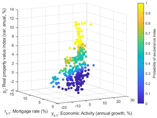 Another point that emerged from this model is that, based on Bayes’ theorem, it is possible to identify the conditional probability that the housing price passes through some specific growth regime at each instant of time. This measure will be relevant for the construction of the exuberance probability index. Formally, these conditional probabilities are: