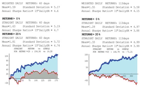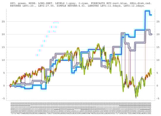 We note that the optimization becomes significantly more involved for our trading system when strict hedging was imposed, i.e., when for any open position, an equal amount is invested in the opposite direction in SPY or similar; see (). Theoretically, hypergeometric functions are needed here; using becomes too approximate. The system worked, but the returns were less impressive. More generally, the correlations between companies are important; this is beyond the system we present, though we did the group optimization.