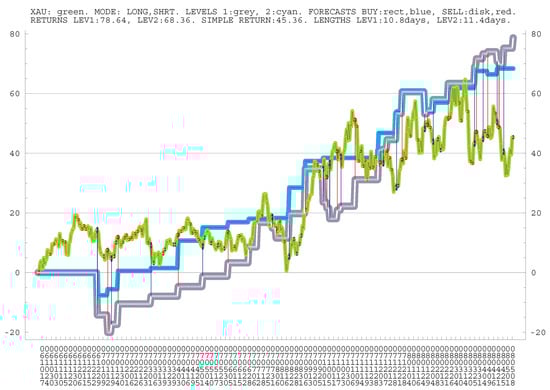 An interesting way for creating a new line was by shifting the existing one by 1–2 h. Then such a pair of lines worked similarly for some time, but eventually, their trades became quite different (even with coinciding parameters). The profitability of such “parallel” lines was generally comparable (but not always). Changing the trading modes was another possibility for producing multiply lines. For instance, the lines could be with or without short trading, though almost always both modes were present.