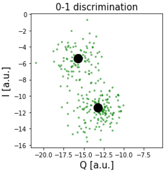 - Clustering the samples of the measured results and an equivalent number of ground states to derive the mean values around the ground and first excited states.