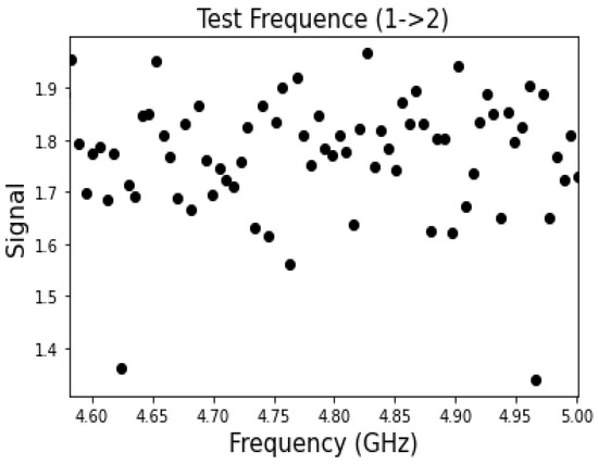 Signal measurement for the measured transitions. The first candidate extremum appears at ~4.6 GHz.