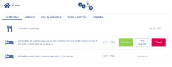 | Coaching Action | Get up from bed if awake, Go to bed only if sleepy, See your doctor, Adjust bedroom temperature, Avoid drinking 2 h before sleep | 0% | PLT |