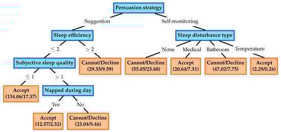 - The predicted probabilities from the acceptance model can then be used to instantiate the probability distributions for each of the PLTs mentioned above in Section 3.2. Consequently, coaching actions and their renderings should then be adapted to be closer to the user’s actual preferences. Particular implementation details will be presented in Section 4.2.
