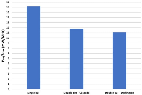According to the above simulations on power consumption and considering the maximum operating frequency of each topology, the power consumption per MHz is extracted for the three topologies. Thus, the average power consumption per MHz reaches 16.18 mW/MHz, 11.78 mW/MHz and 11.13 mW/MHz, for topologies (I), (II) and (III), respectively (Figure 16).