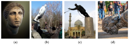 - Firdos Square Statue Destruction. Available online: https://en.wikipedia.org/wiki/Firdos_Square_statue_destruction (accessed on 28 August 2021).