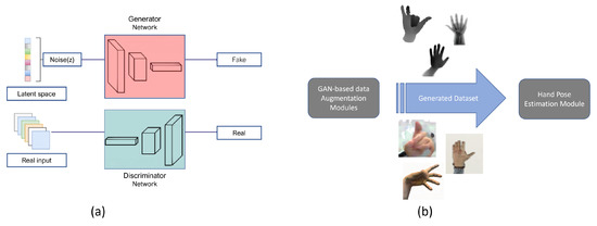 In this study, we reviewed the most recent state-of-the-art methods in data augmentation for hand pose estimation problem using GANs. Since most of the top-performed methods in HPE required large-scale training datasets, the current lack of large-scale training datasets that are accurate and diverse causes such methods to overfit. Moreover, manual hand–keypoint annotation is expensive, labor intensive, and still error-prone, often not being accurate enough either due to measurement errors or due to human errors. To address the quantitative and qualitative issues of hand pose training data and to enrich the hand pose dataset in modality and quantity, recent studies focus on using GANs to acquire comprehensive datasets in terms of quantity and modalities.