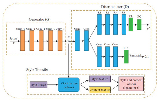 Flowchart of the proposed method in [30], covering the generator, the discriminator, and style-transfer networks in detail. Originally used in [30].