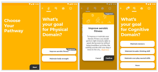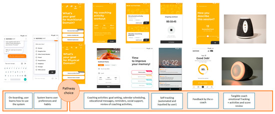 The pathway selection stage is a key moment in the well-being intervention, in which user needs to receive from the e-coach a greater follow-up and support and in a meaningful way, to become more aware of the importance of their choice. This phase should carefully manage the expectations of the users, so that they clearly understand the next steps to be taken. Participants suggested selecting the pathways in a more visible and structured way. Additionally, it will be useful if users can constantly check their progress in each pathway, also as a reminder of their choice and final goal. Such progress was nuanced in the app among various charts monitoring progress in each domain and clearly provided only as oral feedback in the tangible coach, which unfortunately encountered technical problems for some users. On the other hand, they also expressed the need that the pathway selection becomes a meaningful moment that generates an informed and conscious choice (i.e., clear intention formation).