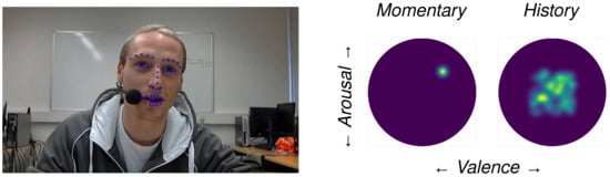 Finally, as already stated in Section 1, the audio modality is not processed by our CERT mainly because we aim for a system capable of estimating human behavior throughout the whole interaction scenario, i.e., including nonverbal parts. As part of future work, a more sophisticated system can be investigated, capable of shifting from a visual to an audio–visual processing tool based on the speech of the person. The above is anticipated to improve recognition performance mainly in the arousal dimension, as proved by novel audio–visual approaches [,].