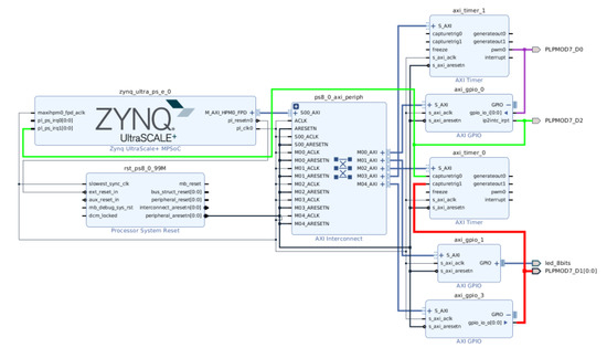 33. Xilinx. AXI GPIO v2.0 LogiCORE IP Product Guide; Technical Report; Xilinx: San Jose, CA, USA, 2016. [Google Scholar]