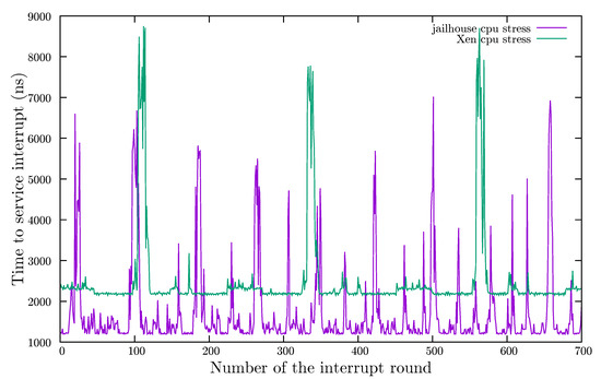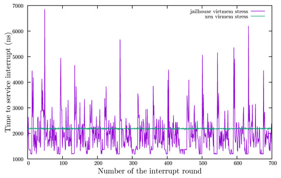 Although the authors of [29] conducted some research on CPU performance in an FPGA card with a chip similar to ours—Xilinx ZCU102—they were not interested in the interference of the hypervisor on latencies but in using Jailhouse as the tool to isolate different virtual machines—so that they do not disturb each other’s resources.