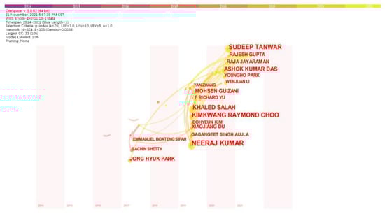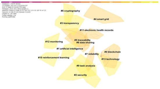 | 8 | 12 | 0.972 | 2017 | data sharing (22.65, 1.0 × 10−4); access control (18.4, 1.0 × 10−4); attribute-based encryption (15.95, 1.0 × 10−4); distributed ledger technology (13.34, 0.001); privacy (11.95, 0.001); interoperability (10.84, 0.001); healthcare applications (10.39, 0.005); synchronization (10.39, 0.005) |