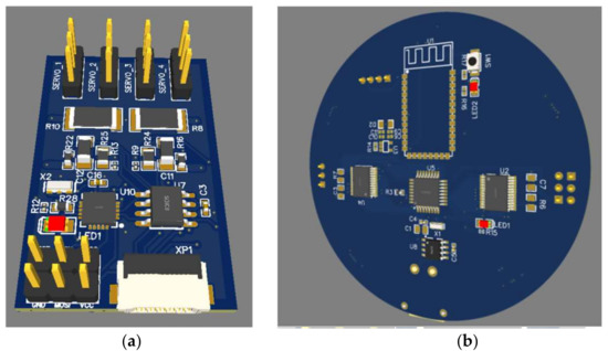 Appearance of the designed board: (a) current measurements via servos; (b) control boards.