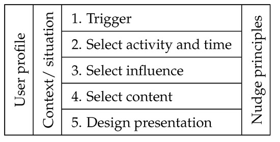 In the following, we first describe each step in the design process, then provide a few general principles for smart nudge design in Section 6.