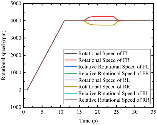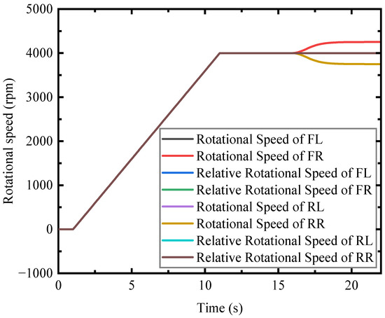 Relative rotational speed and rotational speed of the front and rear EDWs during acceleration and constant speed process.