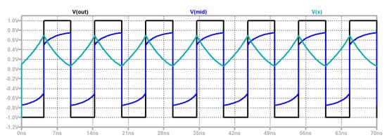 The time diagrams of the signals are presented in Figure 13 for an explanation of the operation of the memristor-based generator.
