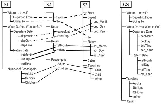 Three input query interfaces (S1, S2, and S3) and global query interface derived (GS) [].
